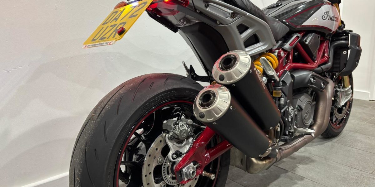 2022 Indian FTR1200, Akrapovic silencers, Ohlins suspension, TFT screen, carbon fibre mudguard, tank & cowl, R&G rad guards and paddock stand bobbins. Sharp torquey motor, flat tack inspired styling. Blends cruiser and sport naked characteristics. Limited number 1622. Vin 018910. . Black 2 seats. The North West’s Finest Family Run Business
